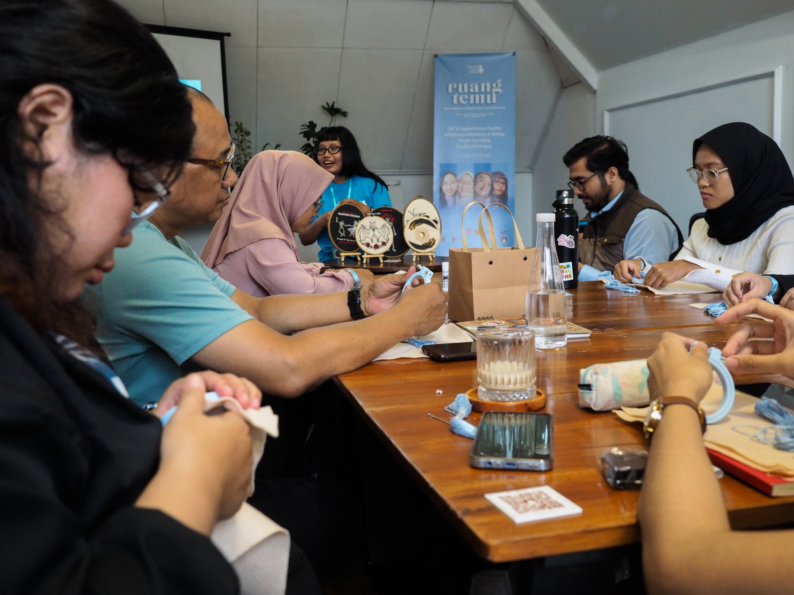 Ruang Temu menjadi pengalaman belajar yang menghubungkan teori dengan praktik. Di sini, peserta dapat menemukan ruang rehat, mencoba metode praktis, serta bertemu komunitas yang memiliki semangat dalam perjalanan kesehatan mental.